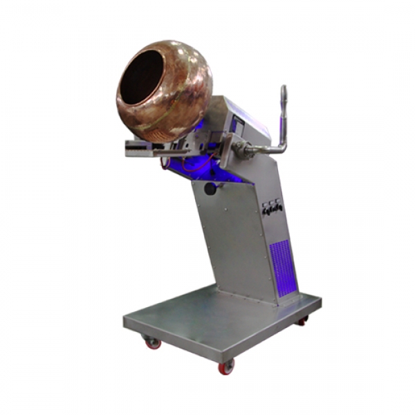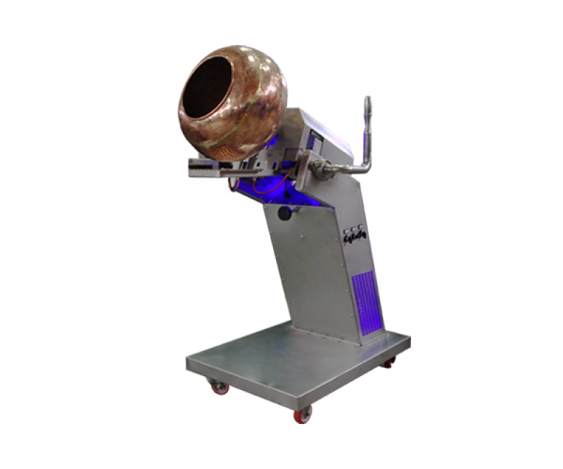 Labaratuvar tipi kaplama makinası tekli bir bakır kazana sahiptir.Bu draje kaplama makinesi bakır özelliği sayesinde ürün kaplama işlemi sırasında oluşabilecek yanmalar ürüne geçer.Bademlerin,fındıkların orjinal tadı öne çıkacak şekilde makine kaplama işlemini gerçekleştirir.Bu fındık kaplama makinası aynı zamanda ısıyı bir bakır kazan gibi tutabilen bir kalınlığa sahip yüksek yoğunluklu AISI 304 paslanmaz çelik kazan modeli de bulunmaktadır.Çikolata karamel ile kaplanmış mükemmel parlak drajeleri veya prolin ürünleri yapmak için yeterli derecede ısı verecek şekilde dizayn edilmiştir.Bu fıstık kaplama makinesi tekli motorla güçlendirilmiş özelliği sayesinde kazanın dönüşü ve kazan pozisyonunu ayarlayabilmektedir.Kazan isteğe bağlı olacak şekilde gelişmiş premix brülörüne ve makina operatörünün üretim sırasında ısıya maruz kalmasını önlemek için seramik elyaflarla izole edilmiş bir ısı kalkanına sahiptir.