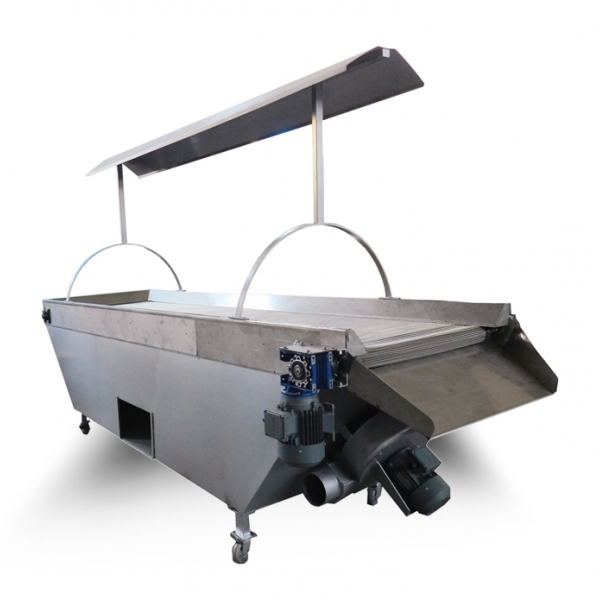 Seçme ve taşıma bandı krokan makineleri veya fritözler ile birlikte entegre edilmiş tam bir montaj hattındaki ünitelerden biri olarak kullanılmaktadır.Bu seçme ve taşıma bandının şasesi AISI 304 paslanmaz çelikten imal edilmiştir.Kullanıcı konveyörün hızını ve isteğe bağlı olarak eklenen dönerli koltük yüksekliğini ayarlayabilmektedir.Seçme bandı seçimi kolaylaştırmak için üstten standart aydınlatma ile donatılmış olup ayrıca atıkları için ayrı kanallara sahiptir.Tüm üretim sistemi üretim alanında kolay hareket kabiliyeti sağlayabilmek için taşınabilir bir platform üzerine monte edilmiştir.