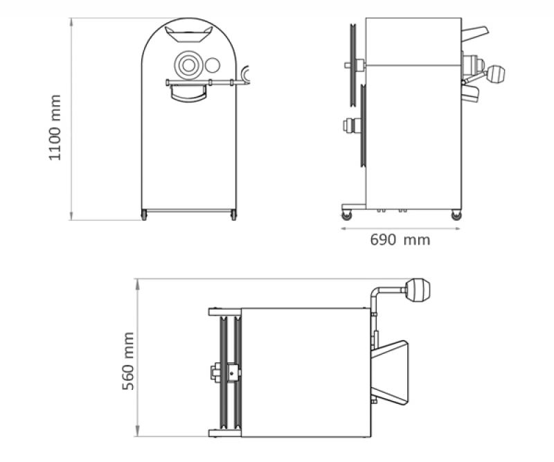 OS-160 leblebi ve nohut kavurma makinesi, taşınabilmesi için hareketli bir platform üzerine monte edilmiştir. Küçük istenmeyen parçacıkların giderilmesi için atık atma haznesine sahiptir.