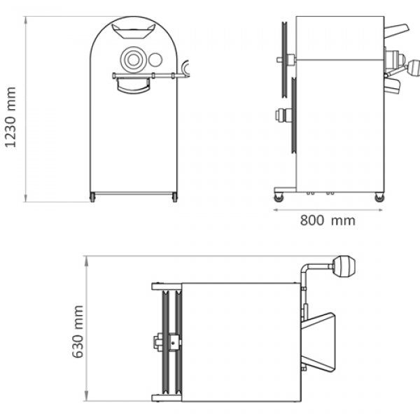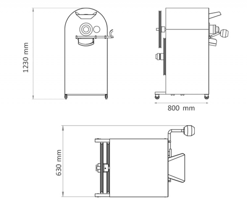 OS-240 leblebi ve nohut kavurma makinesi, taşınabilmesi için hareketli bir platform üzerine monte edilmiştir. Küçük istenmeyen parçacıkların giderilmesi için atık atma haznesine sahiptir.