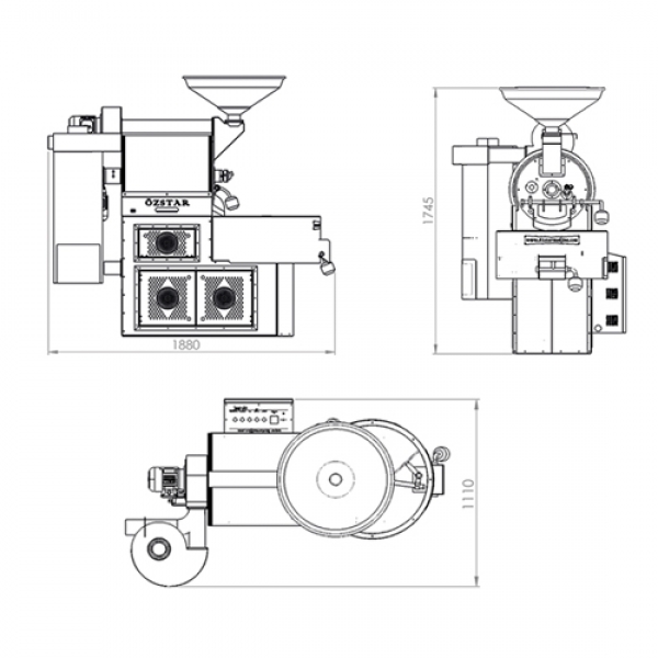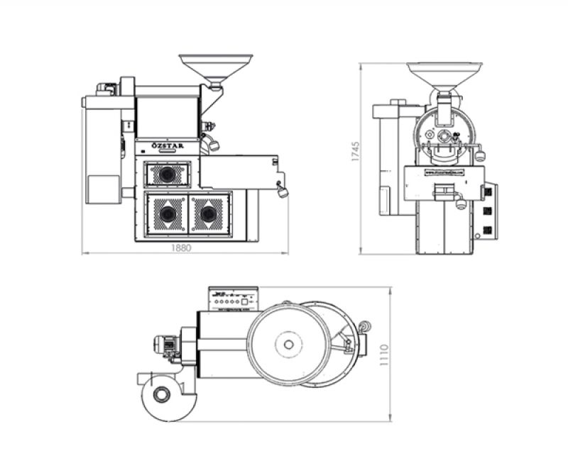 OS - 30K kahve kavurma makinası 30 kg kahve kavurabilmektedir.Kazan kavurma motoru, karıştırma motoru, nem alma motoru ve siklon toplama motoru 4 adet motor vardır. Ürün inceleme kaşığı ürün gözetleme göstergesi senkronize çalışan kavurma ve soğutma sistemi ve yüksek yoğunluklu karıştırma kolu bulunmaktadır.Eşsiz tasarımıyla bu kahve kavurma makinası muhteşem lezzetli kahveler kavurabilmektedir.Önünde yuvarlak kavrulan kahveleri soğutmak için sooğutma sistemi vardır.Motorin Lpg ve doğalgaz yakıt tipleri ile çalışabilmektedir.