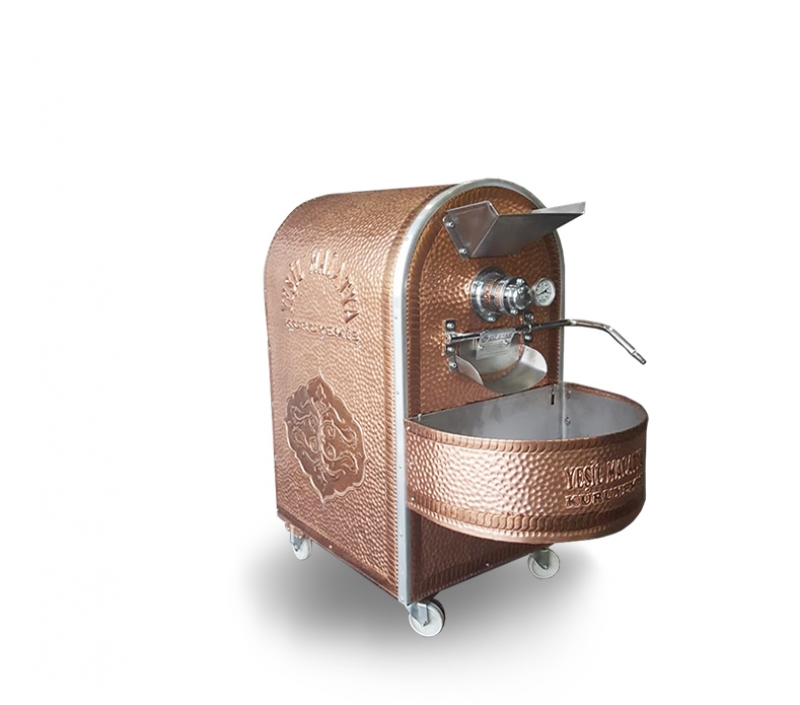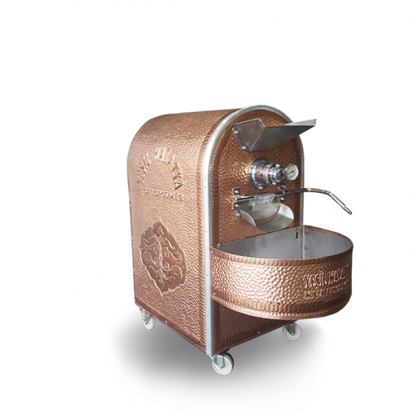 OS 40BK bakır kaplı nohut kavurma makinesi, taşınabilmesi için hareketli bir platform üzerine monte edilmiştir. Küçük istenmeyen parçacıkların giderilmesi için atık atma haznesine sahiptir.