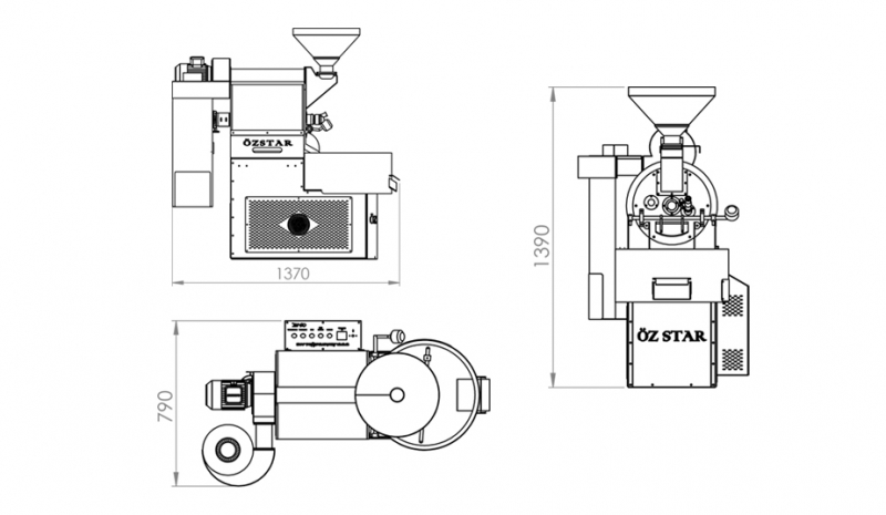 OS - 5K kahve kavurma makinası 245 kilogram ağırlığında 5 kg kahve kavurabilen küçük ölçekli firmalar için özel olarak tasarlanmıştır. Ürün inceleme kaşığı, ürün gözetleme camı,atık toplama siklonu, ısıtma göstergesi senkronize çalışan kavurma ve soğutma sistemi ve yüksek yoğunluklu karıştırma kolu bu kahve makinasında bulunmaktadır.Önünde yuvarlak kavrulan kahveleri soğutmak için soğutma ünitesi vardır.Elektrik ve Lpg ile çalışmaktadır.Kazan motoru, soğutucu fan motoru, soğutucu fan motoru, hava taşıma motoru 4 tane motora sahiptir.Eşsiz tasarımıyla bu kahve kavurma makinası muhteşem lezzetli kahveler kavurabilmektedir.Önünde yuvarlak kavrulan kahveleri soğutmak için soğutma sistemi vardır.Motorin Lpg ve doğalgaz yakıt tipleri ile çalışabilmektedir.Kahve çekirdeklerini kavurma işlemi belli zaman aralığında sıcaklığa bağlı olarak çekirdeğin rengine göre kavrulmasıdır. Kahve kavurma makineleri PLC kontrollü olup istenilen ve ihtiyaç duyulan her ortama göre uyumluluk göstermektedir.